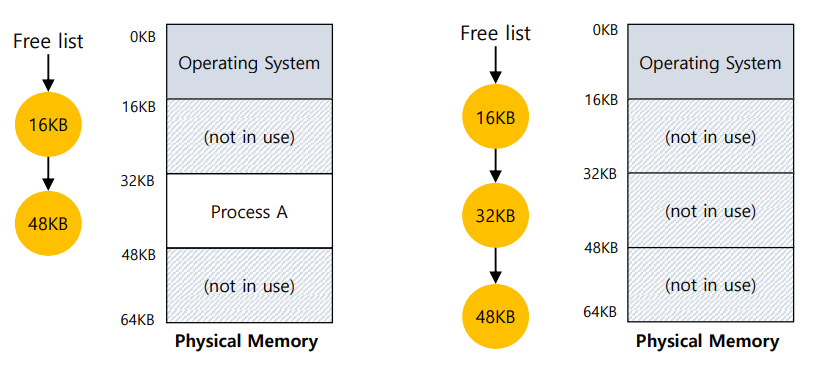 - 프로세스가 종료될때 : 메모리 회수( Reclaiming the memory for use ) (= 다시 free list로)