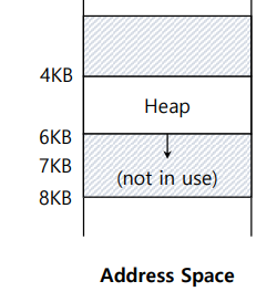 - 만약 잘못된 주소 (7KB 같이) heap이 참조하는 값 범위 밖이면, OS는 segmentation fault를 일으킨다, 하드웨어는 이를 out of bounds 라고함