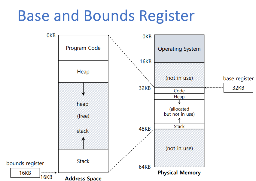 offset(주소공간, 가상 메모리 주소)과 base를 알면 물리 메모리 주소를 알수있음