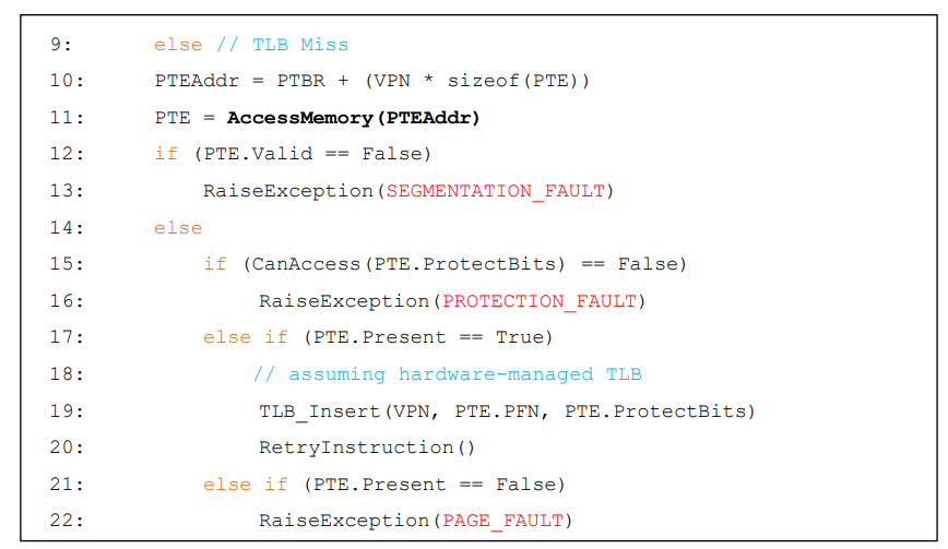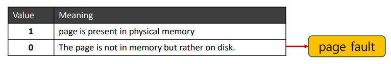 - 하드웨어가 PTE를 살펴볼 때 페이지가 실제 메모리에 있는지 없는지 확인 가능