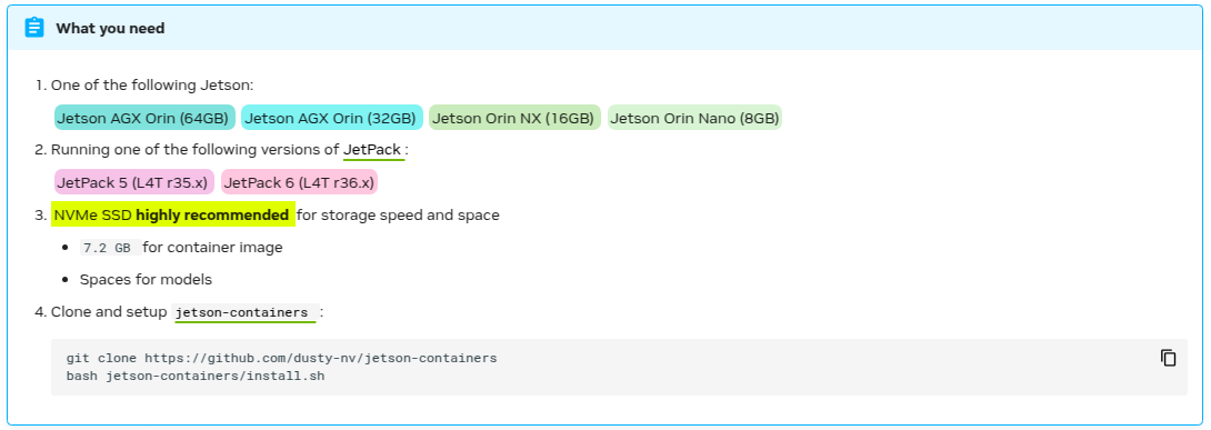 Tips - SSD + Docker Once you have your Jetson set up by flashing the latest Jetson Linux (L4T) BSP on it or by flashing the SD card with the whole JetPack image, before embarking on testing out all the great generative AI application using jetson-container