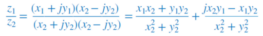 아래의 rectangular form에 z2* (complex conjugate)인 x2 - jy2를 곱해서 통분한다