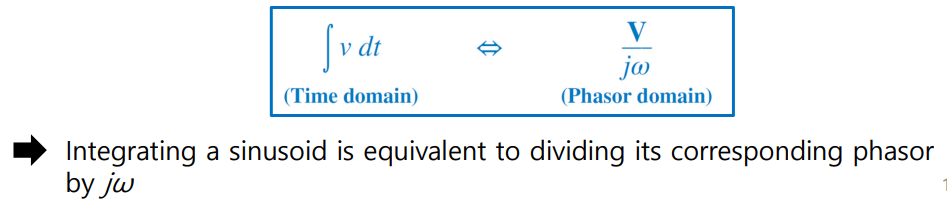 정현파의 적분은 페이저/jw 와 같음