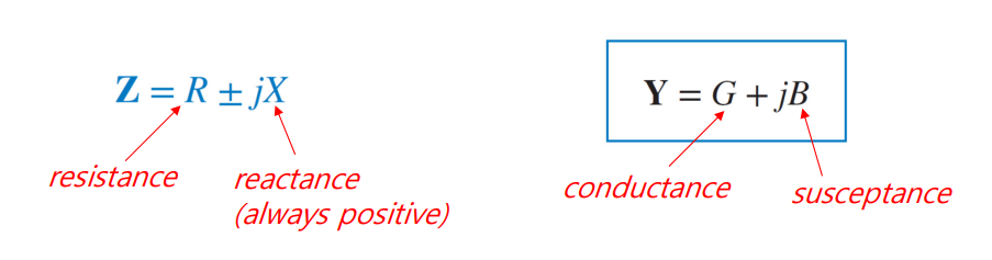 adminttance는 임피던스의 역수, 단위는 지멘스(S) => adminttance, conductance, susceptance 다 지멘스 사용