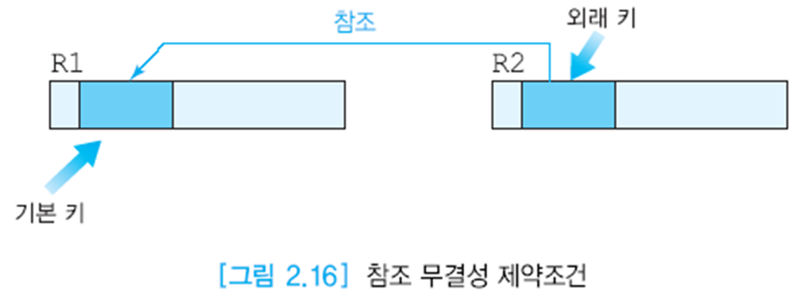 - 릴레이션 사이의 무결성 제약 조건 : 여러 릴레이션을 포함