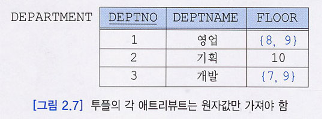 - 각 애트리뷰트 값이 반드시 원자값이어야 함